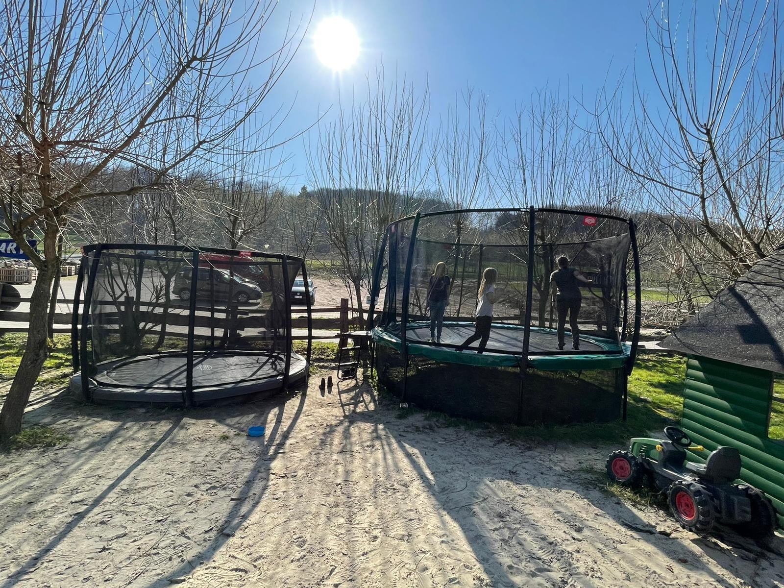 angrenzend lädt die Sonnenterrasse mit Sandfläche, Trampolin und